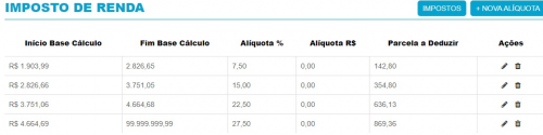 Cálculo (Valor total solicitado x Alíquota%) - Parcela a deduzir = valor que será deduzido