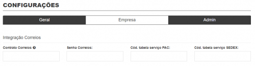 Menu Lateral - Configurações Empresa - Integrações Correios.